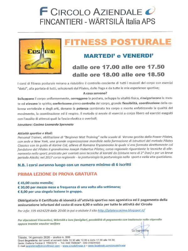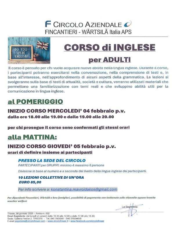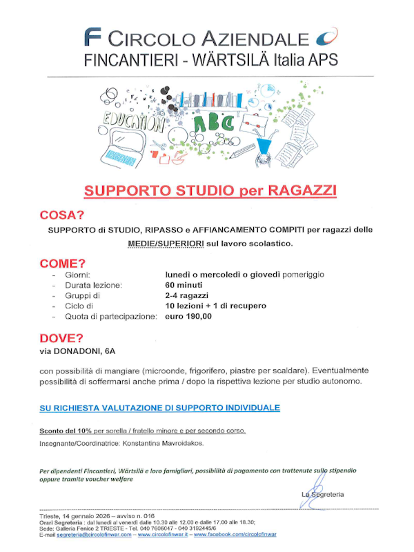 ogni lunedì dalle 17.30 alle 19.00