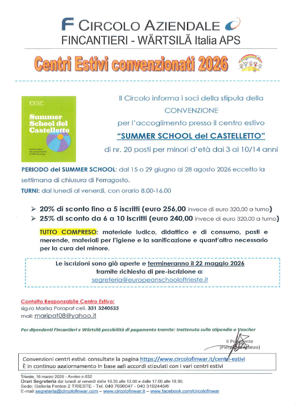 Tutti i diritti riservati | Circolo Aziendale Fincantieri - Wärtsilä Italia APS- Informativa sulla Privacy - Cookie Policy